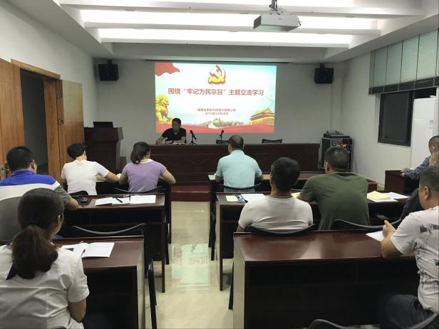 10月28日,公司黨支部召開“不忘初心,牢記使命”專題學習研討會,圍繞“牢記為民宗旨”這一主題展開學習研討,全體黨員和入黨積極分子參加會議。