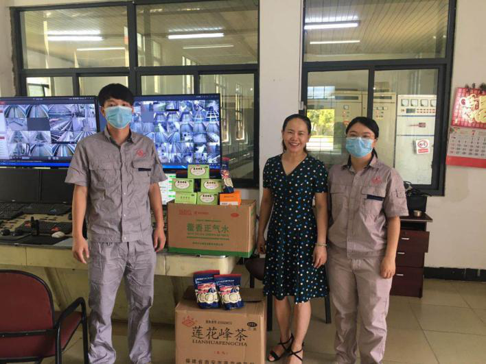 在慰問現場,洪小婷主席為一線職工們送上了防暑降溫用品,并向大家表示誠摯的慰問和衷心的感謝,同時勉勵大家發揚吃苦耐勞的精神,一如既往地立足本職崗位,以更加充沛的精力投入到工作中。