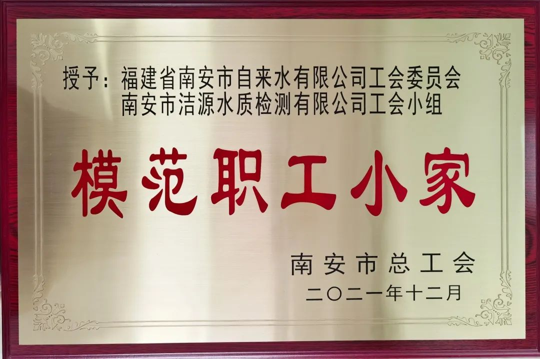 南安市總工會近日對2021年度南安市模范職工之家、模范職工小家進行表彰,其中南安市潔源水質檢測有限公司工會小組被授予“南安市模范職工小家”榮譽稱號。