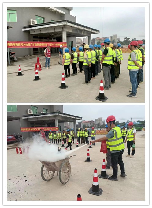 安全為先,防范未“燃”。為進一步提高施工人員消防安全意識和應急響應能力,確保南翼污水處理廠擴建及提標改造工程項目的安全穩定,11月10日,南翼污水處理廠在施工場地開展消防安全應急演練,演練內容包括:學習應急救援預案、滅火器的操作與應急使用、現場滅火及現場作業人員疏散等。