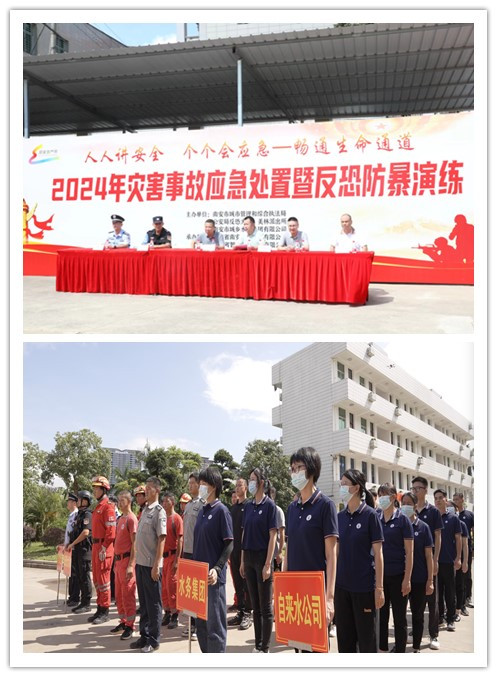 2024年6月是全國第23個“安全生產(chǎn)月”,為深入貫徹落實(shí)習(xí)近平總書記關(guān)于安全生產(chǎn)的重要論述,強(qiáng)化職工安全意識,提升職工自護(hù)、自救、逃生及救援的能力,營造良好的企業(yè)安全生產(chǎn)環(huán)境,6月24日上午,市水務(wù)集團(tuán)聯(lián)合市城市管理和綜合執(zhí)法局、市公安局反恐大隊(duì)、美林派出所等單位在美林水廠開展2024年災(zāi)害事故應(yīng)急處置暨反恐防暴演練,市城市管理和綜合執(zhí)法局、市公安局反恐大隊(duì)、市水務(wù)集團(tuán)等相關(guān)領(lǐng)導(dǎo)蒞臨現(xiàn)場觀摩指導(dǎo)演練,約80余人參加演練。