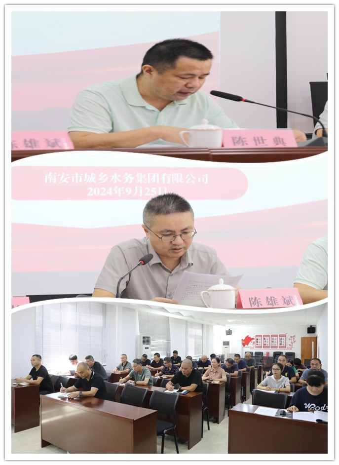 為切實抓好集團安全生產工作,防范各類事故發生,進一步強化節日期間的安全意識,落實安全生產主體責任,9月25日,市水務集團召開2024年第三季度安全生產工作總結暨國慶節節前安全生產工作部署會議,集團領導班子、各部門、權屬子公司股級及以上人員、安全員等參加。