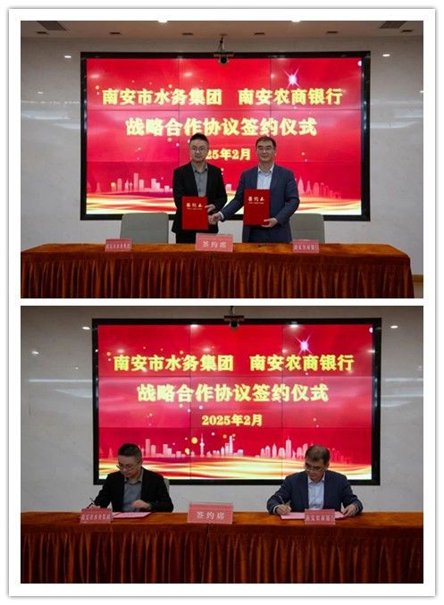 2月20日,南安市水務集團與南安農商銀行舉行了戰略合作協議簽約儀式,標志著雙方在金融服務、項目融資、資金結算等多個領域開啟深化合作、共促發展的新篇章。南安市水務集團總經理陳雄斌、南安農商銀行行長林水土等領導出席簽約儀式。